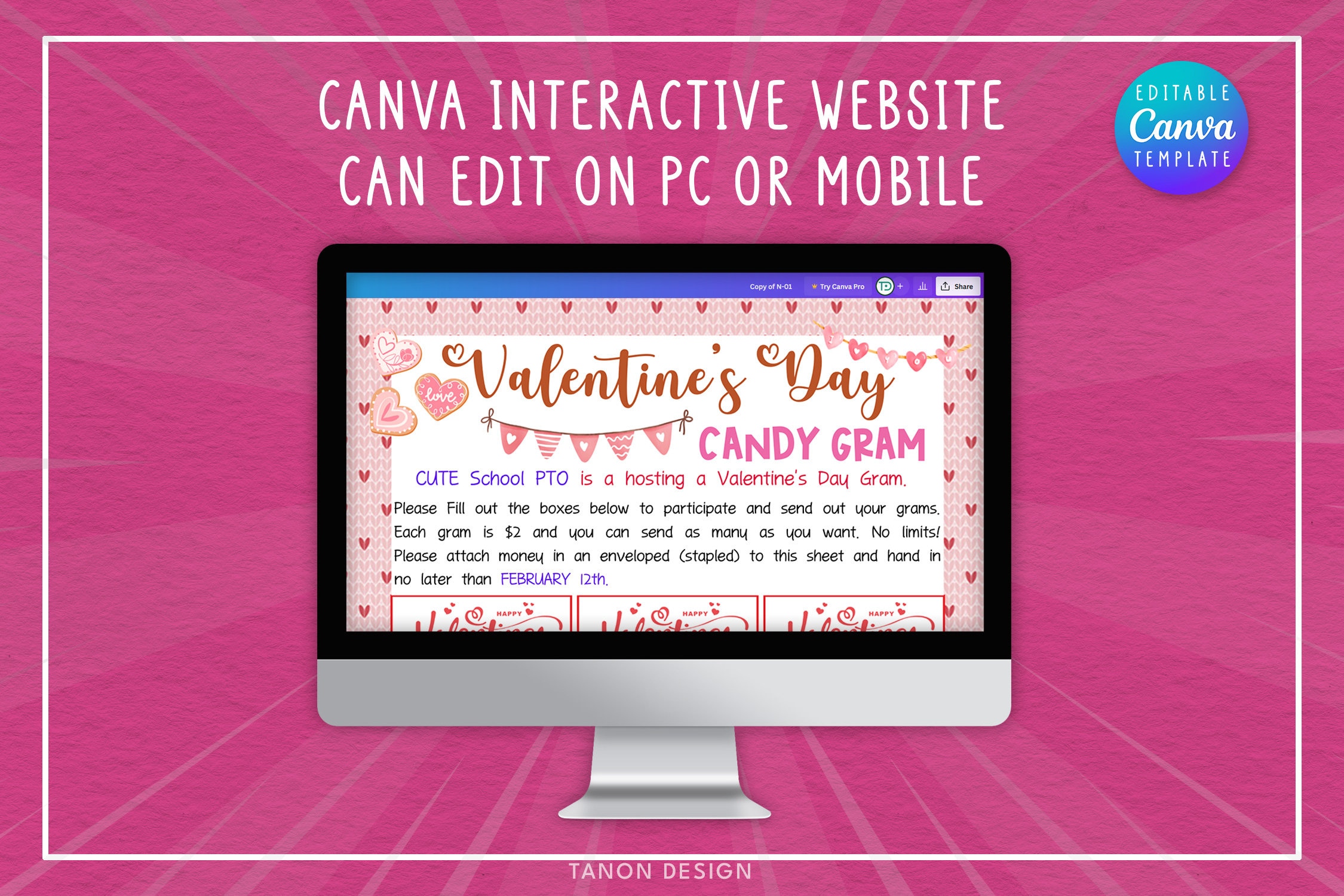 Editable Valentine #39 s Day Candy Gram Gram Form Edit in Canva PTA PTO