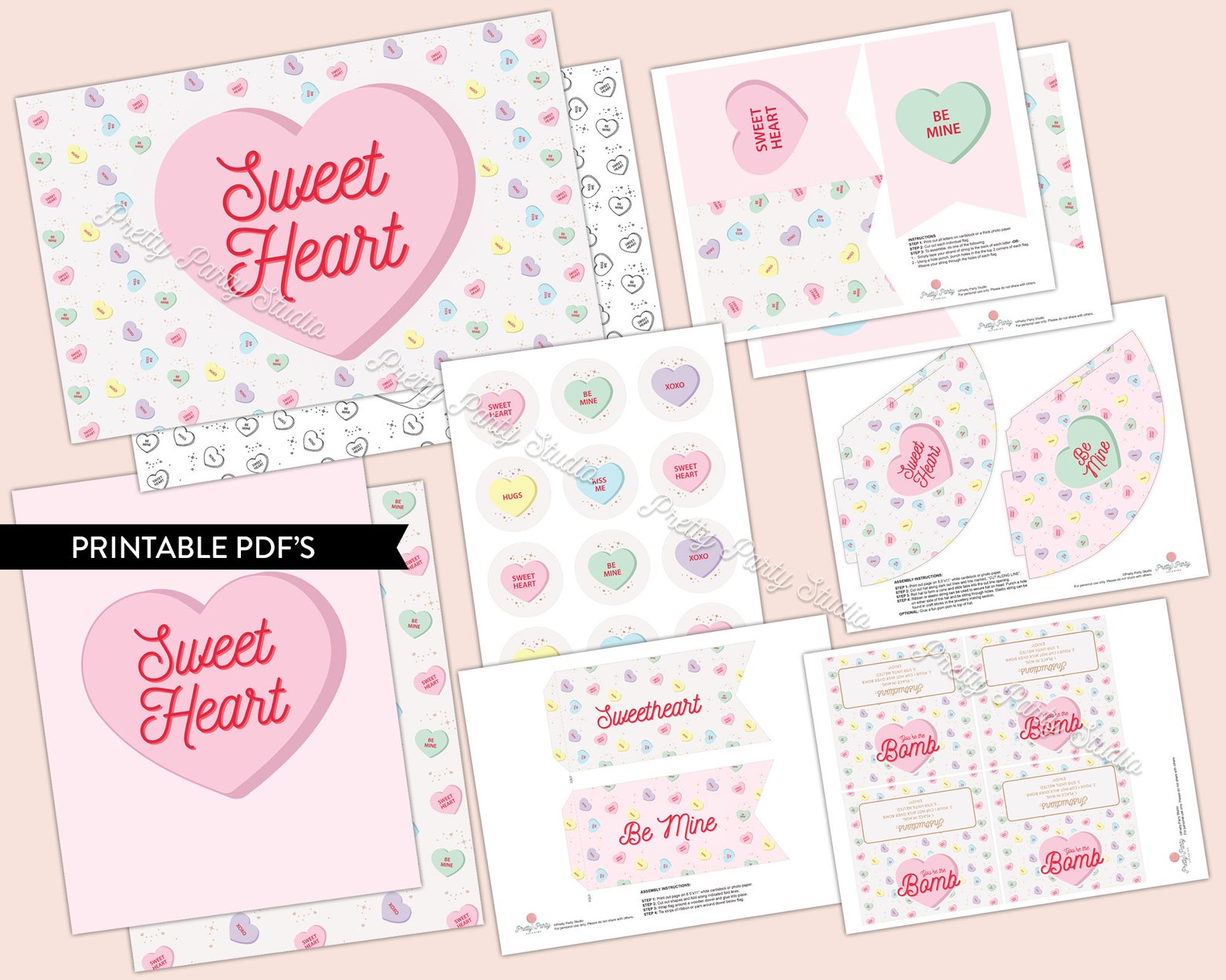 Valentine #39 s Day Party Pack Printable Conversation Hearts Valentines Day