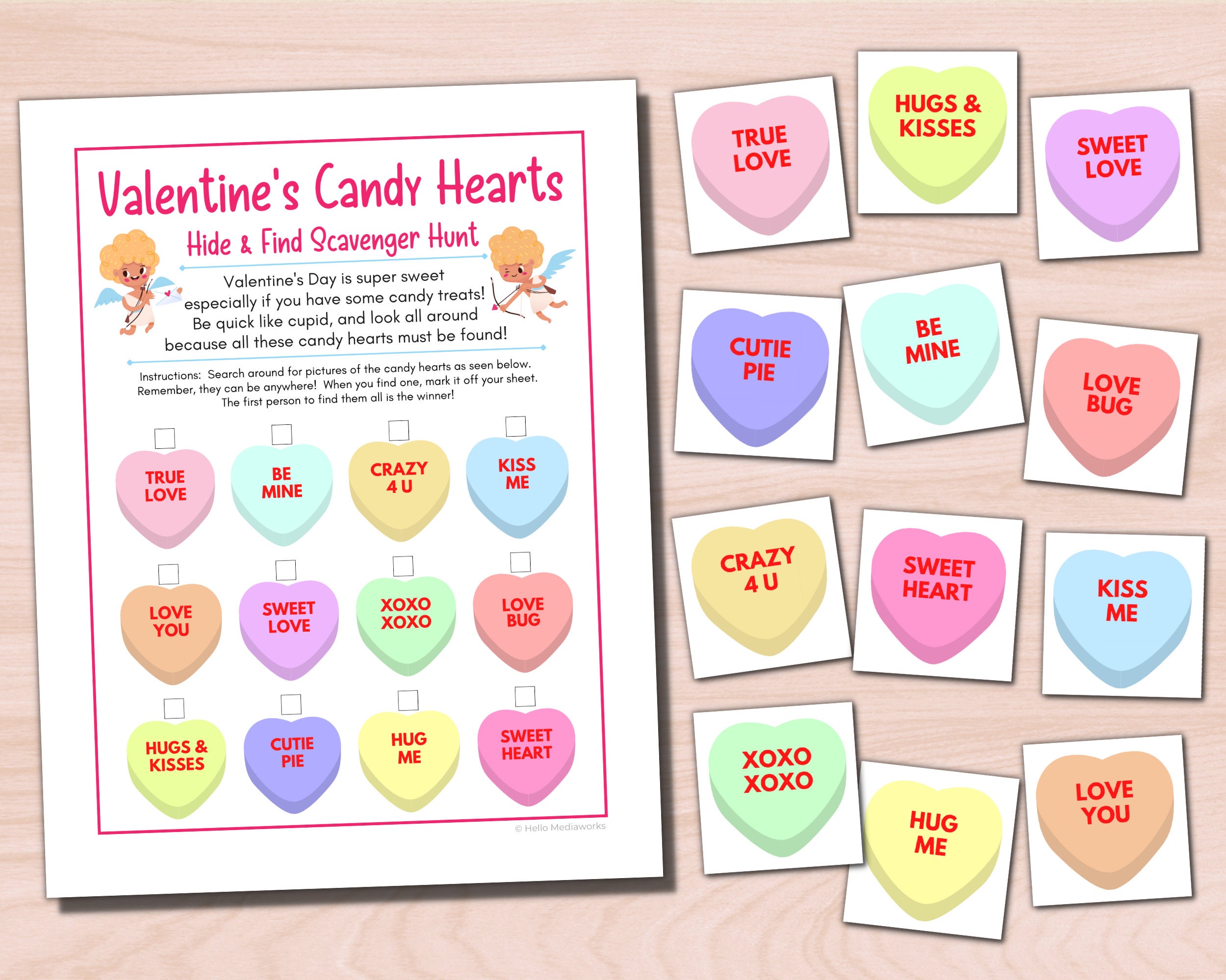 Valentine #39 s Candy Heart Scavenger Hunt Game Valentine #39 s Day Activity