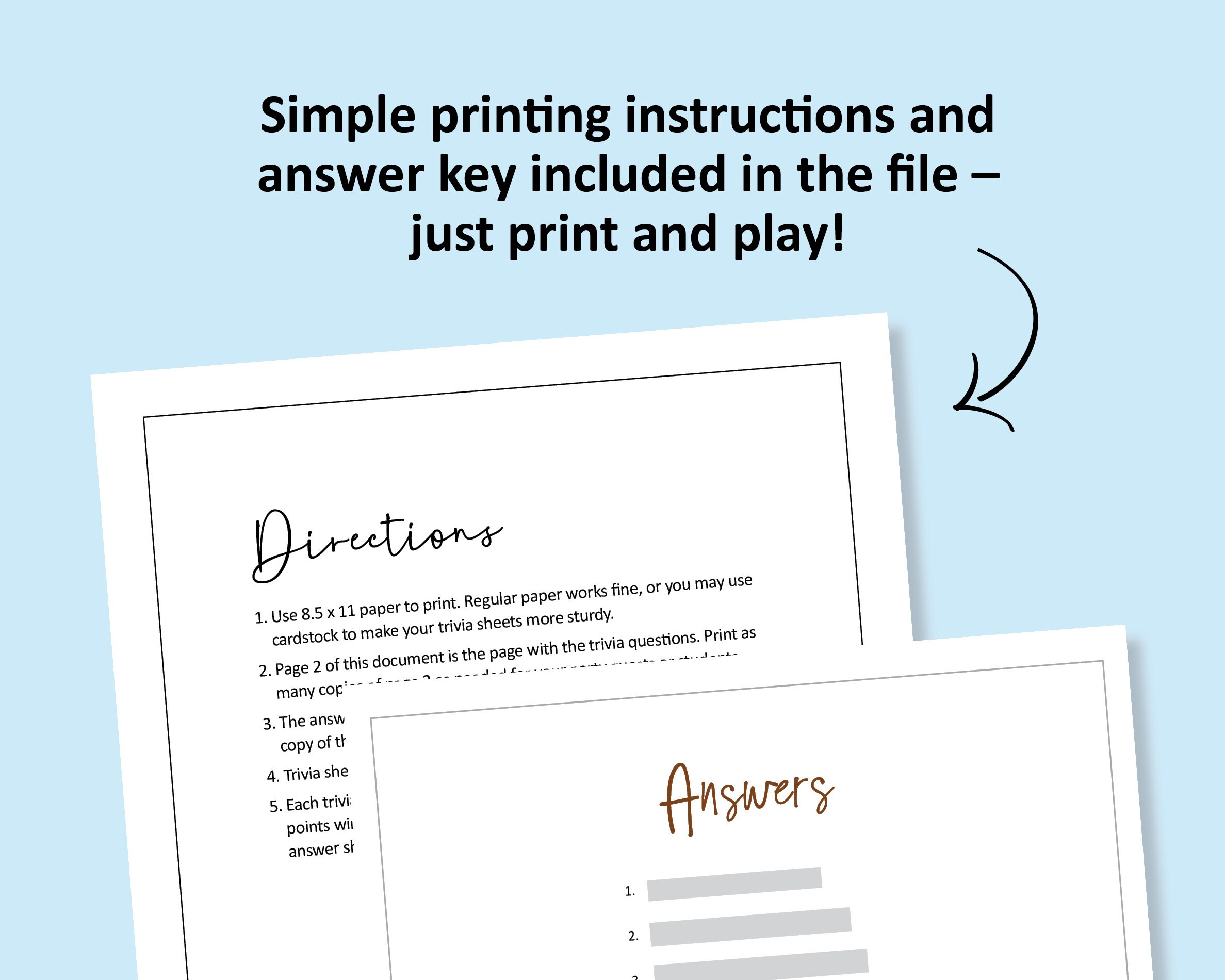 Chocolate Trivia Game Candy Printable Instant Download Sweets Party
