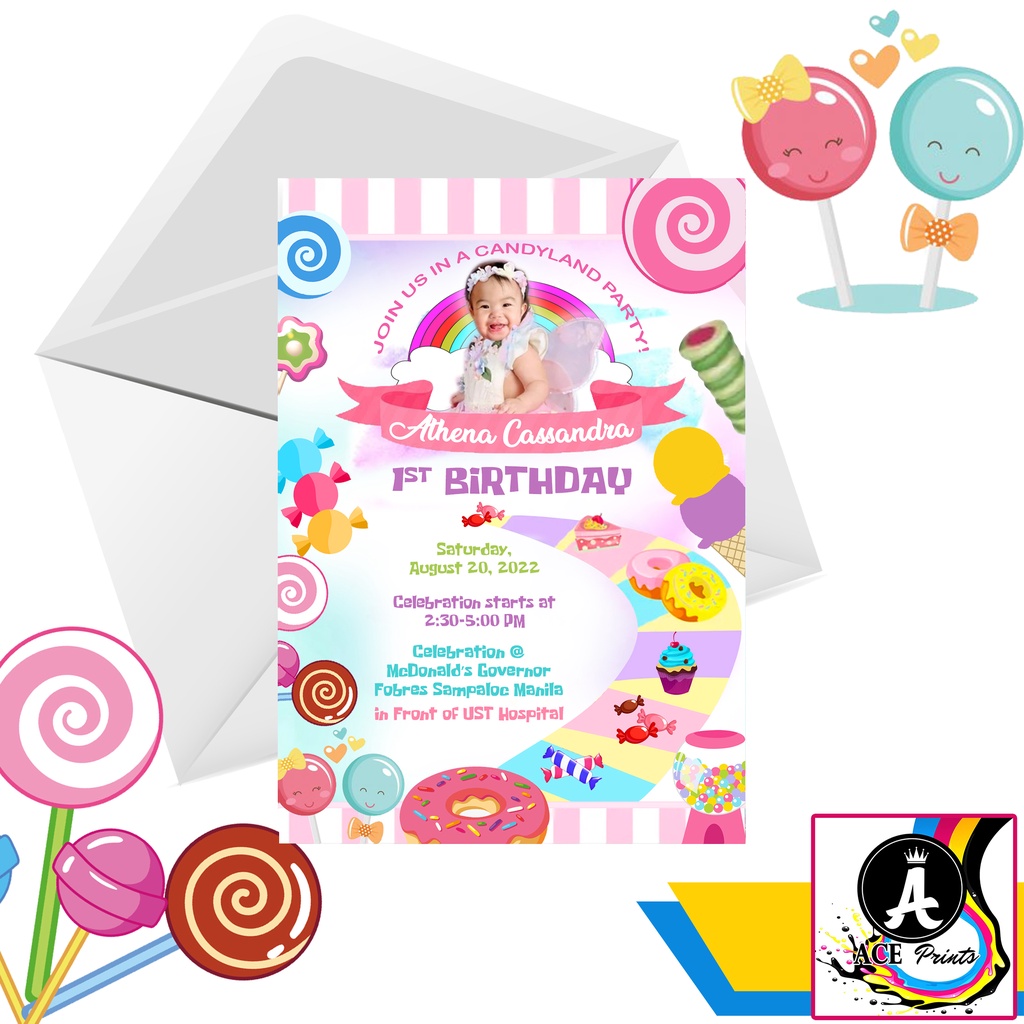 Invitation Card for Birthday Candyland FREE Envelope Shopee Philippines