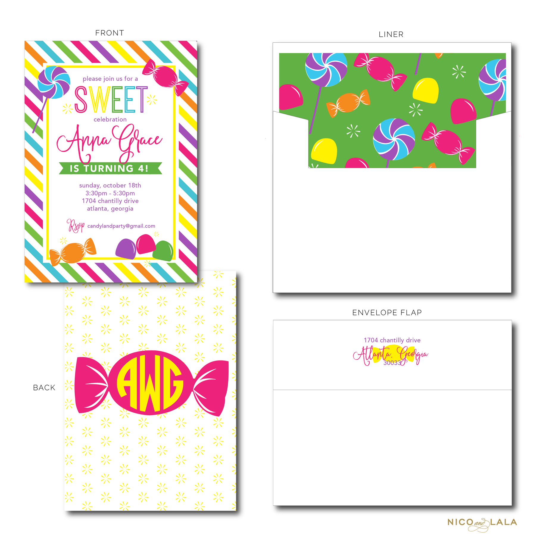 10 PRINTED Candyland Invitations with Envelopes Candy Theme Etsy in