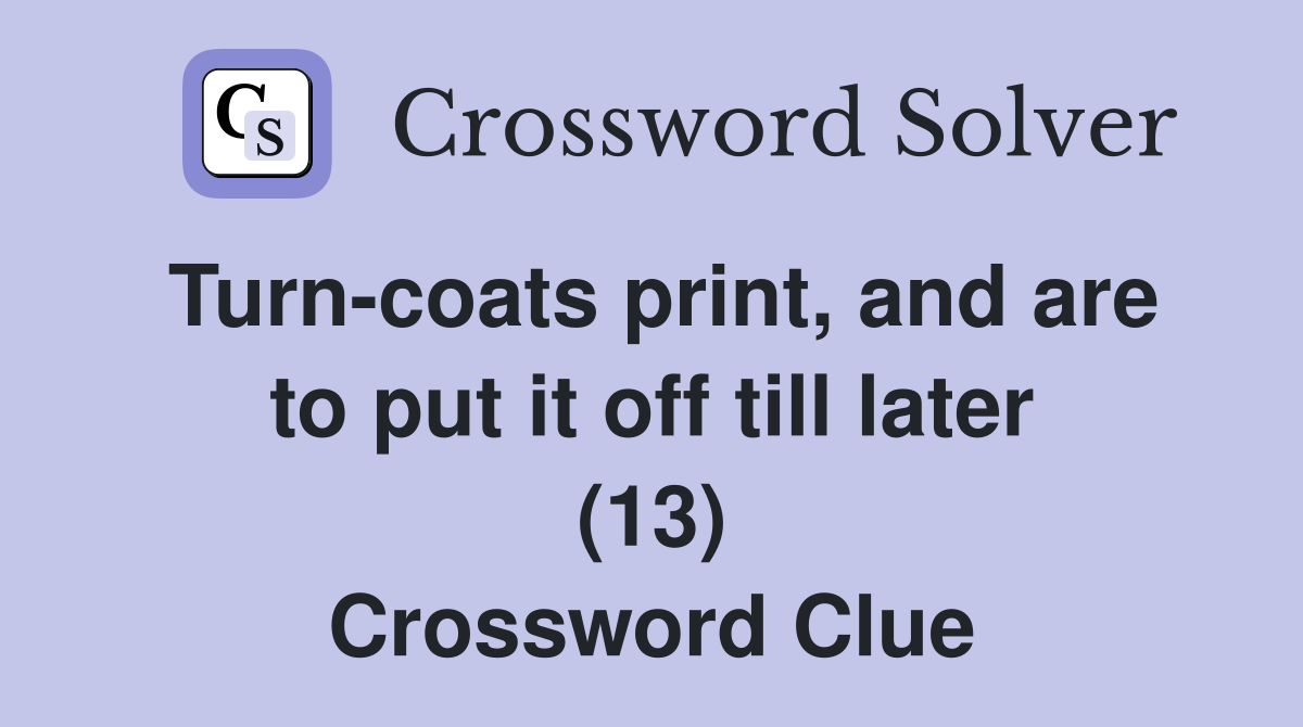 Turn coats print and are to put it off till later (13) Crossword
