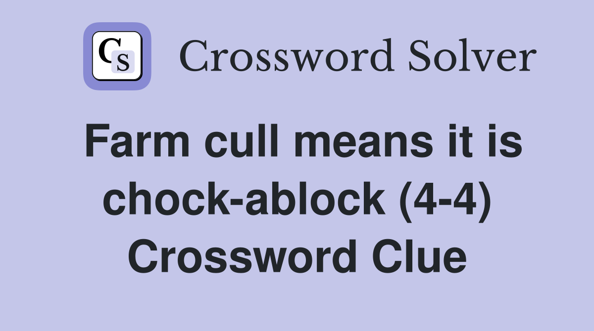 Farm cull means it is chock ablock (4 4) Crossword Clue Answers
