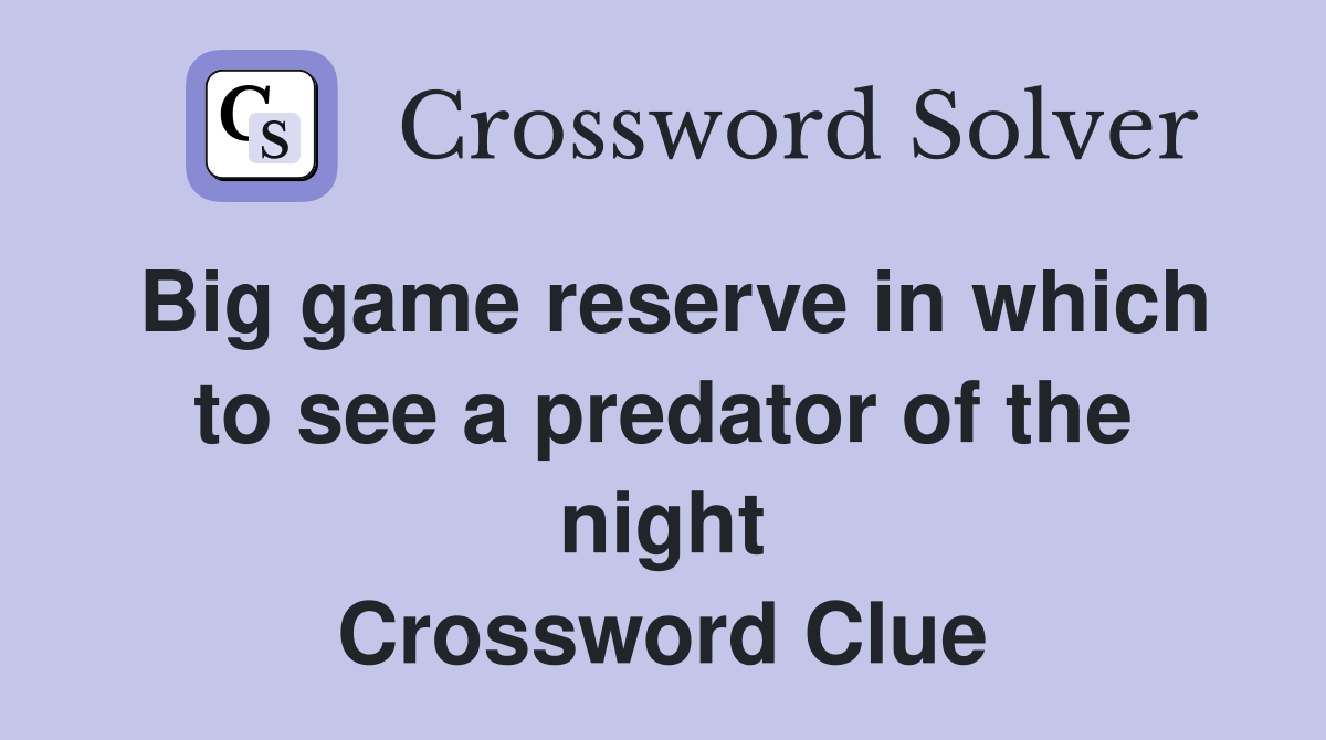 Big game reserve in which to see a predator of the night Crossword