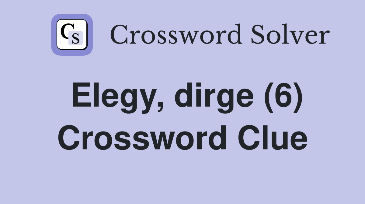 Elegy dirge (6) Crossword Clue Answers Crossword Solver
