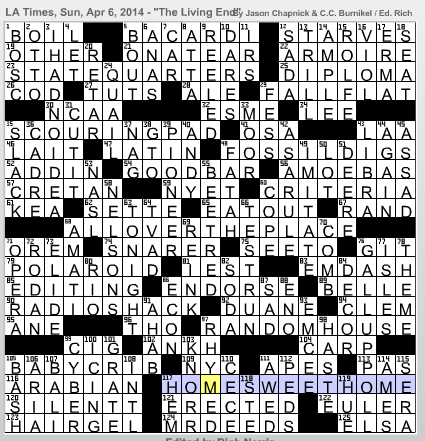 L A Times Crossword Corner: Sunday April 6 2014 Jason Chapnick C C