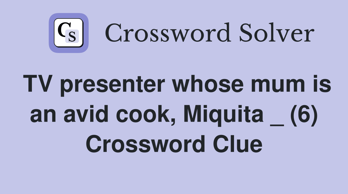 TV presenter whose mum is an avid cook Miquita (6) Crossword Clue