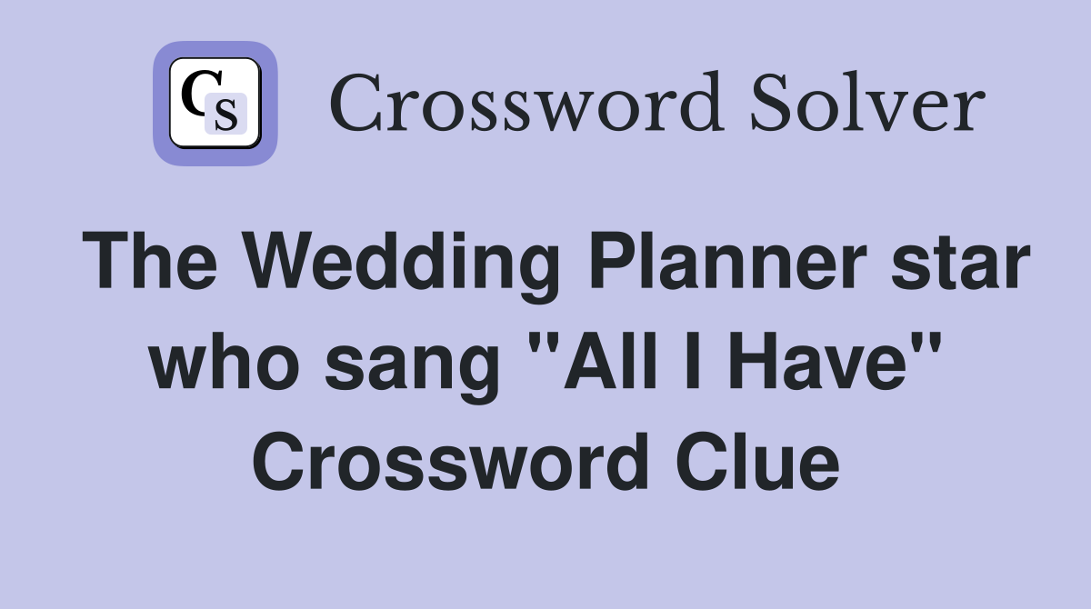 The Wedding Planner star who sang quot All I Have quot Crossword Clue Answers