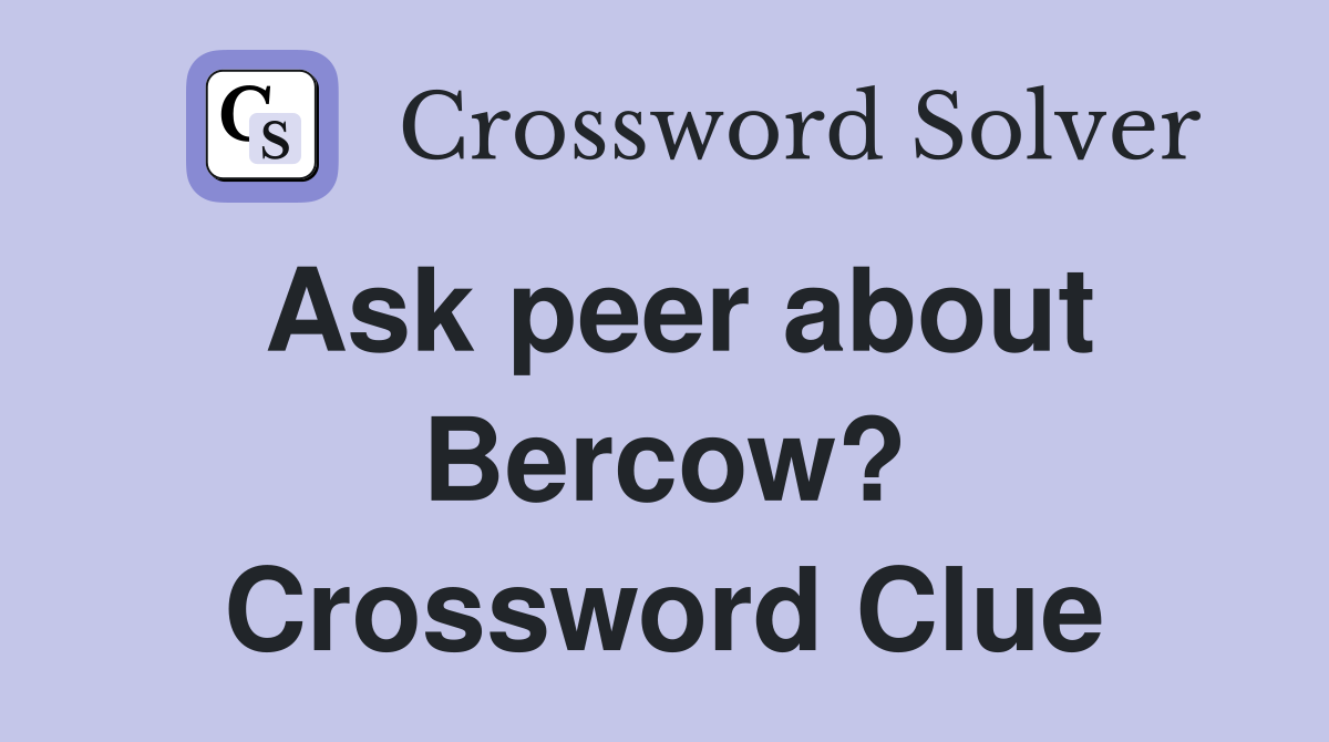 Ask peer about Bercow? Crossword Clue Answers Crossword Solver