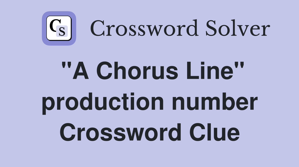quot A Chorus Line quot production number Crossword Clue Answers Crossword