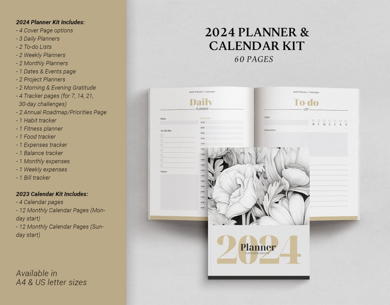 2024 Planner Template 2024 Canva Calendar Template Daily Weekly