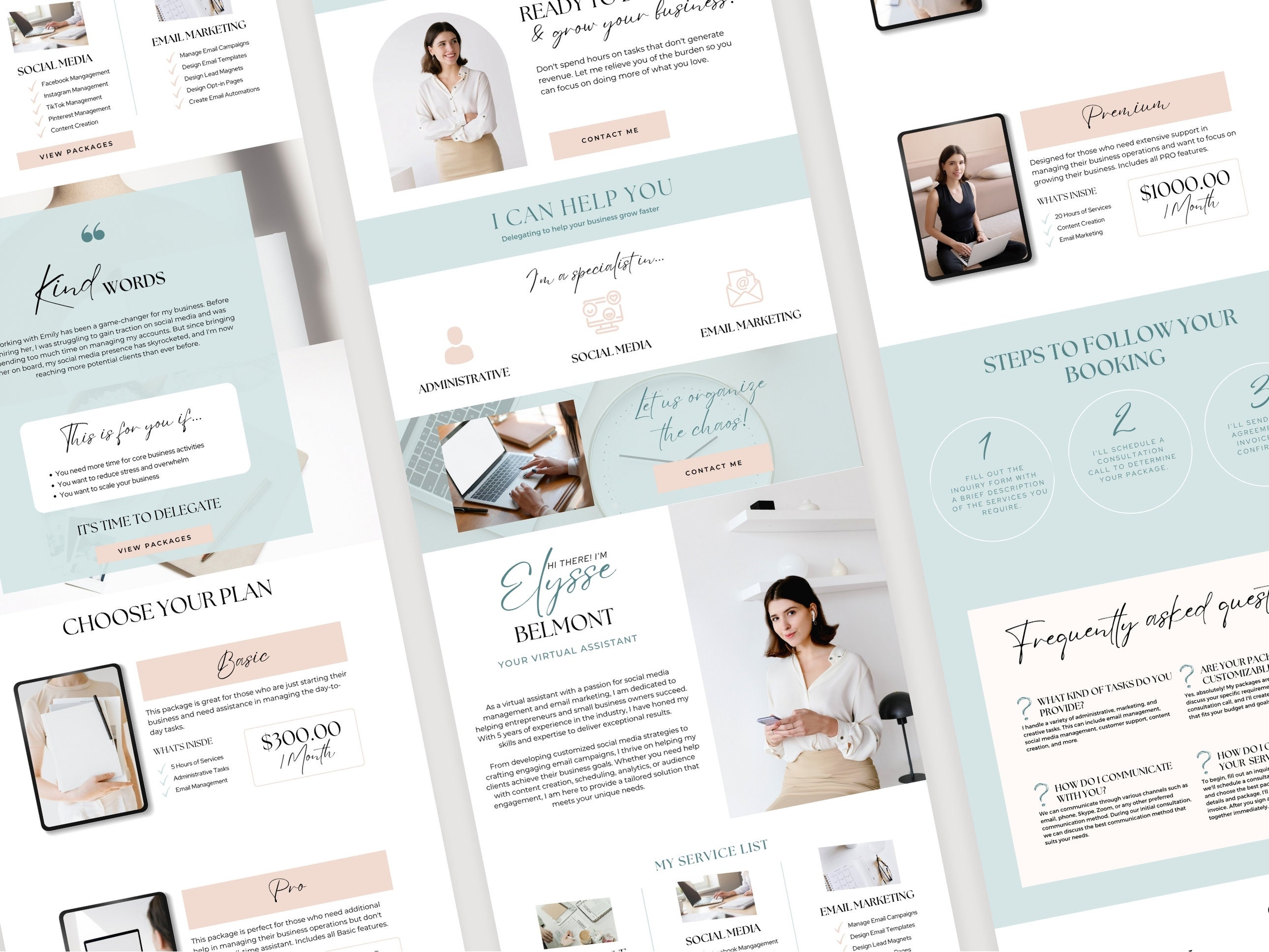 Canva Sales Page Template for Virtual Assistants Mint Green Canva