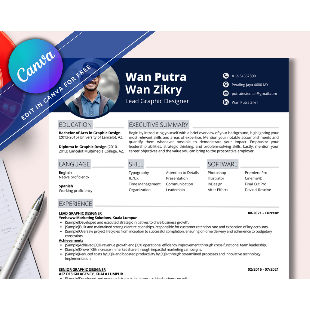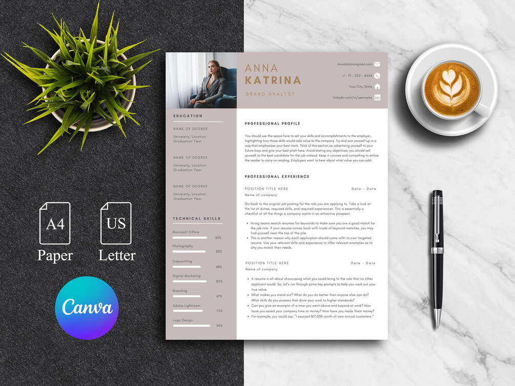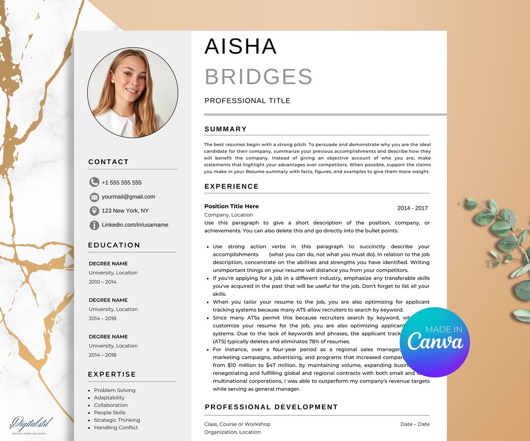 Canva Resume Template With Photo Professional and Modern CV Design In