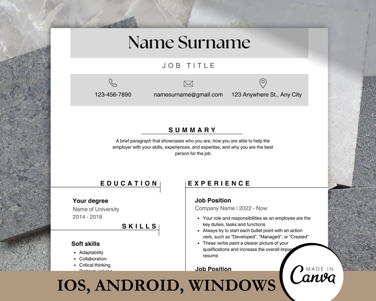 Professional Resume Template for Canva Resume/cv Edit and Customize