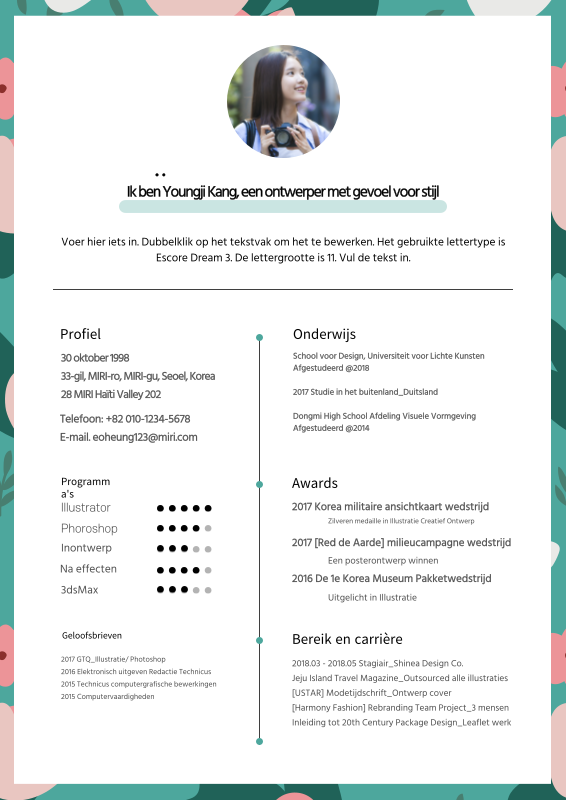 Turquoise schoon cv MiriCanvas