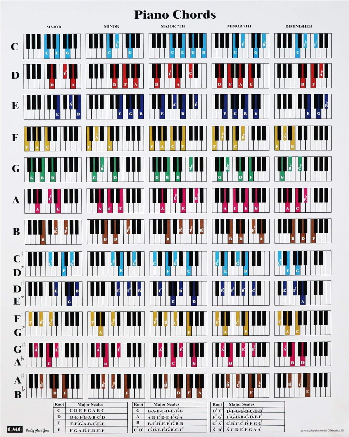 AABERIC Piano Chord Scale Canvas Prints Wall Posters Chart Piano