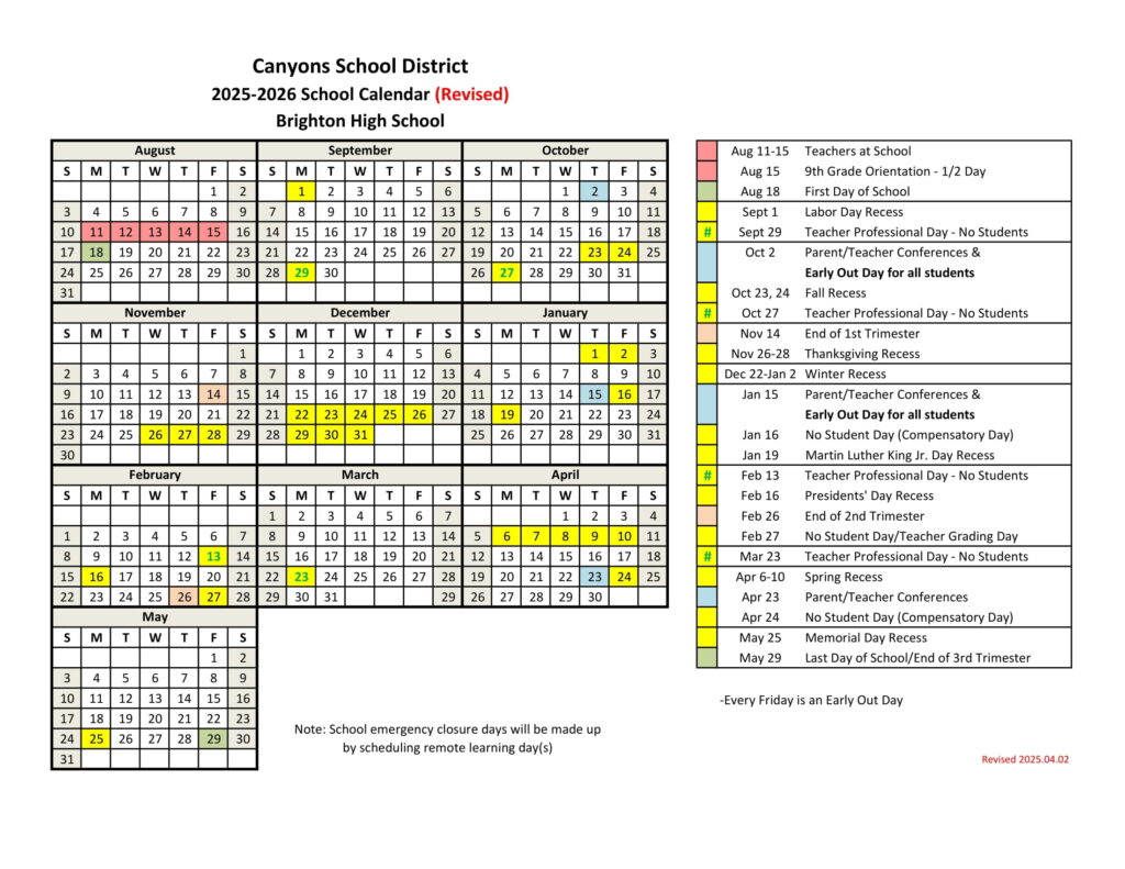 Canyons School District Calendar 2025 2026 Download