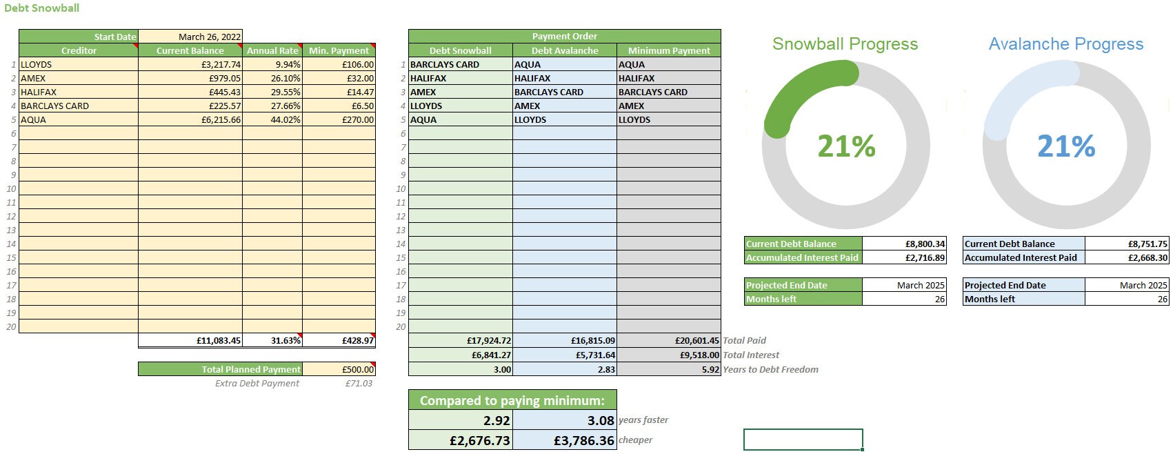 Debt Snowball Chart Excel Template for Budgeting and Loan Schedules