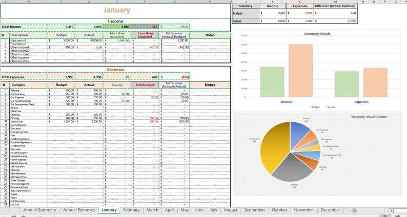 Annual Budget Excel Digital Budget Personal Finance Tracker Finance