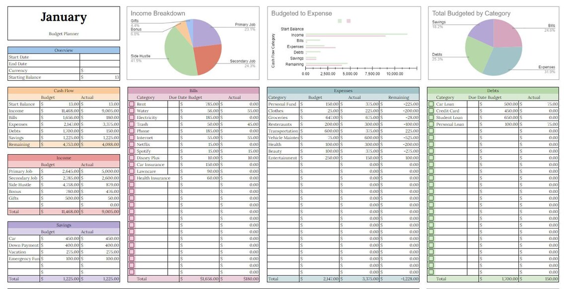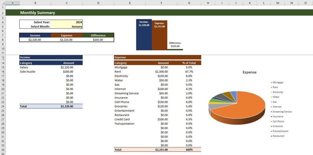 Personal Budget Excel Template for Spending Tracking Excel Sheet for