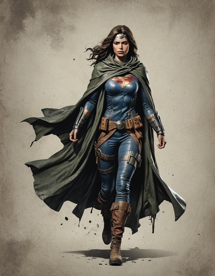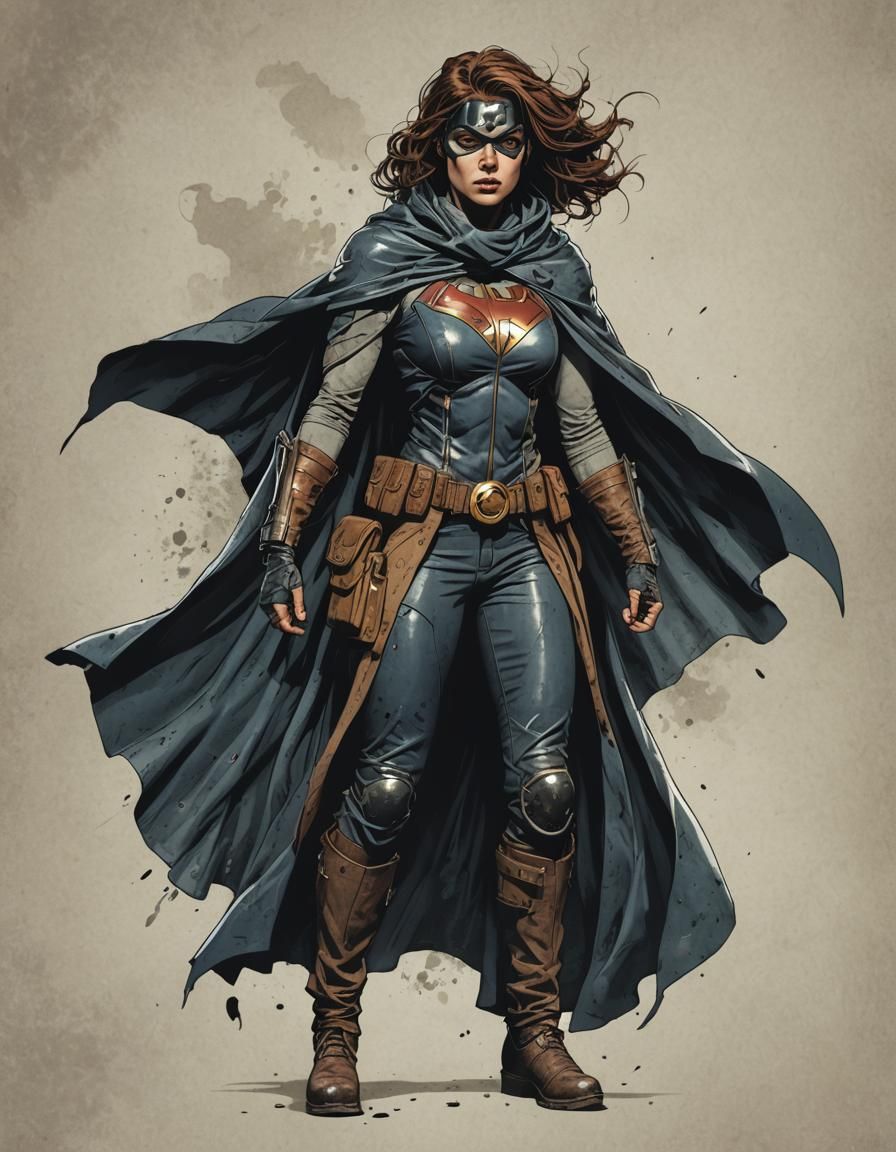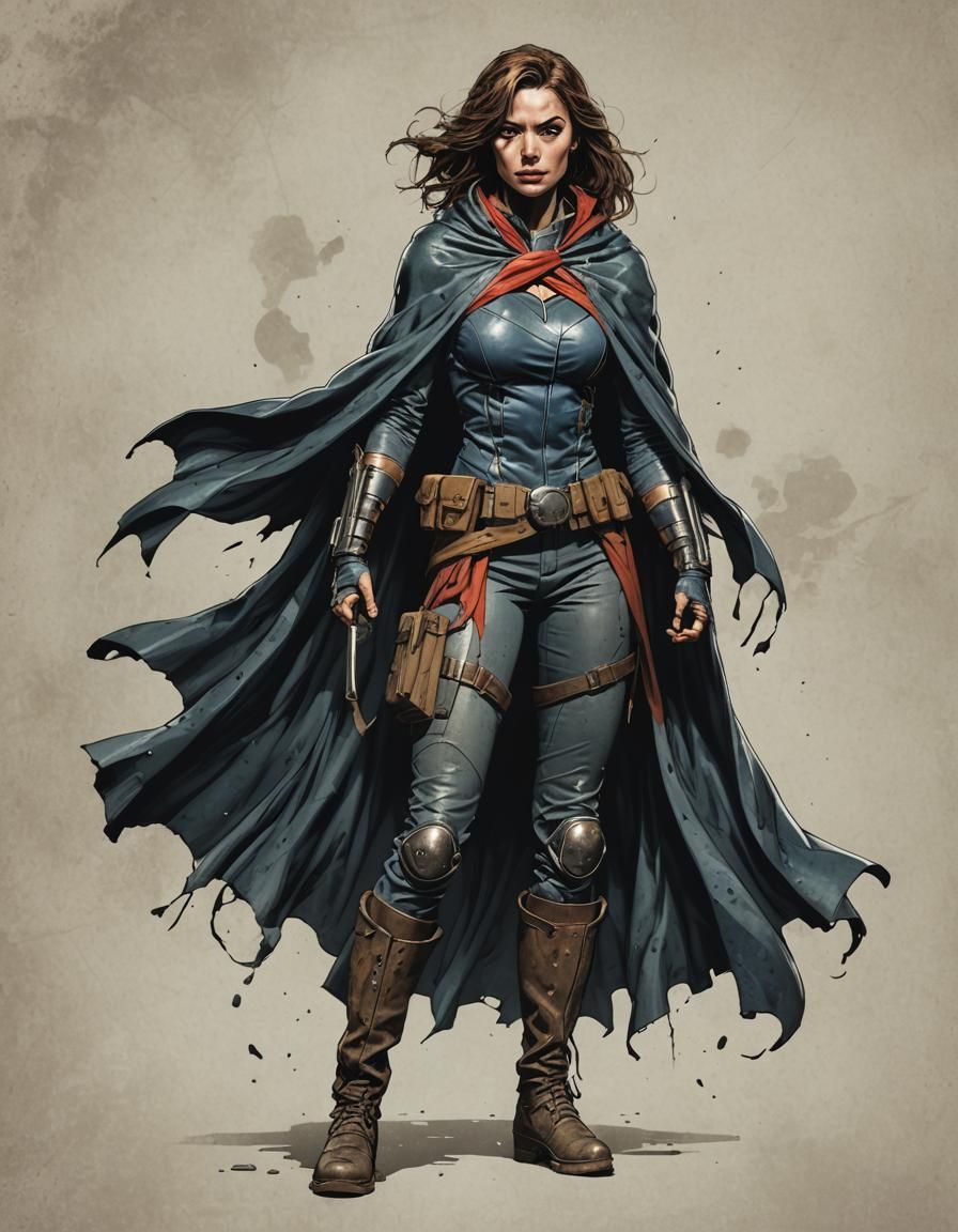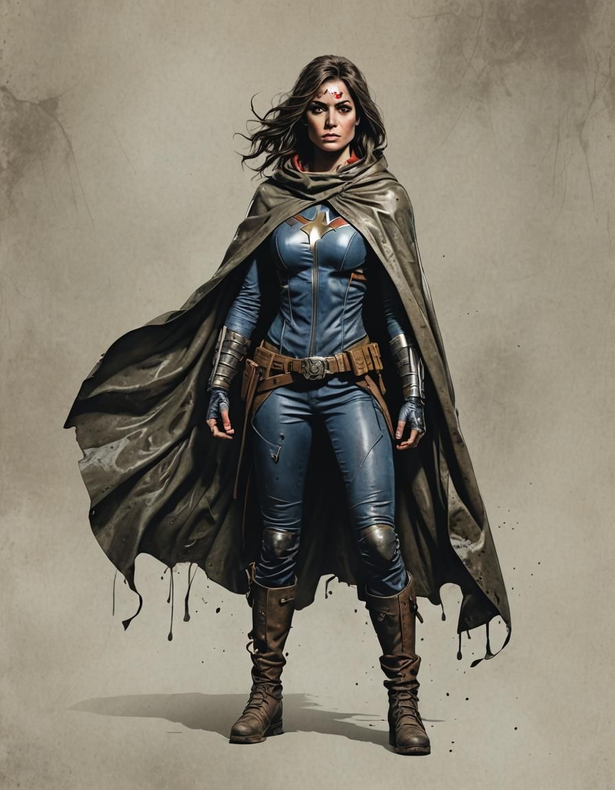 Post apocalyptic DC Marvel lady superhero with a flowing cape Blank