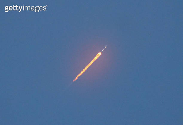 Cape Canaveral Rocket Launch over Florida Beach separating stages 이미지