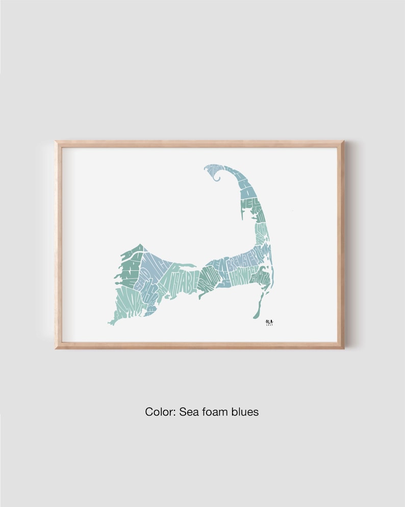 Cape Cod MA Towns Map Print Massachusetts Wall Art Poster Hand Drawn