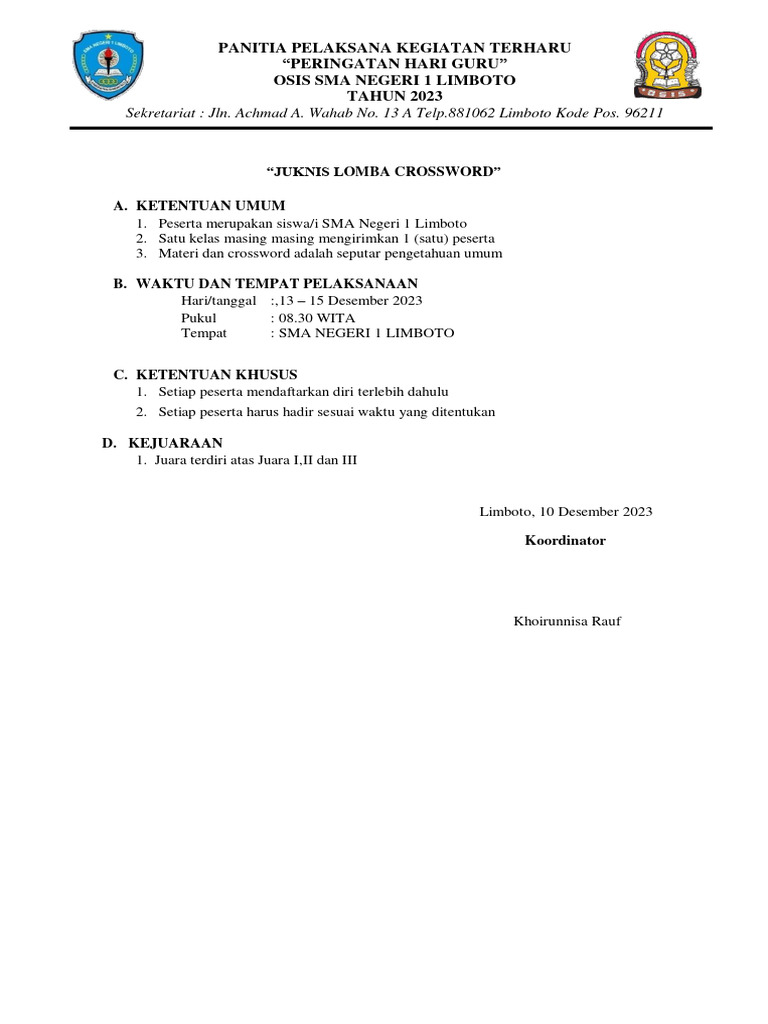 Juknis Lomba Crossword Alaska 1 2023 PDF Karier Perkembangan