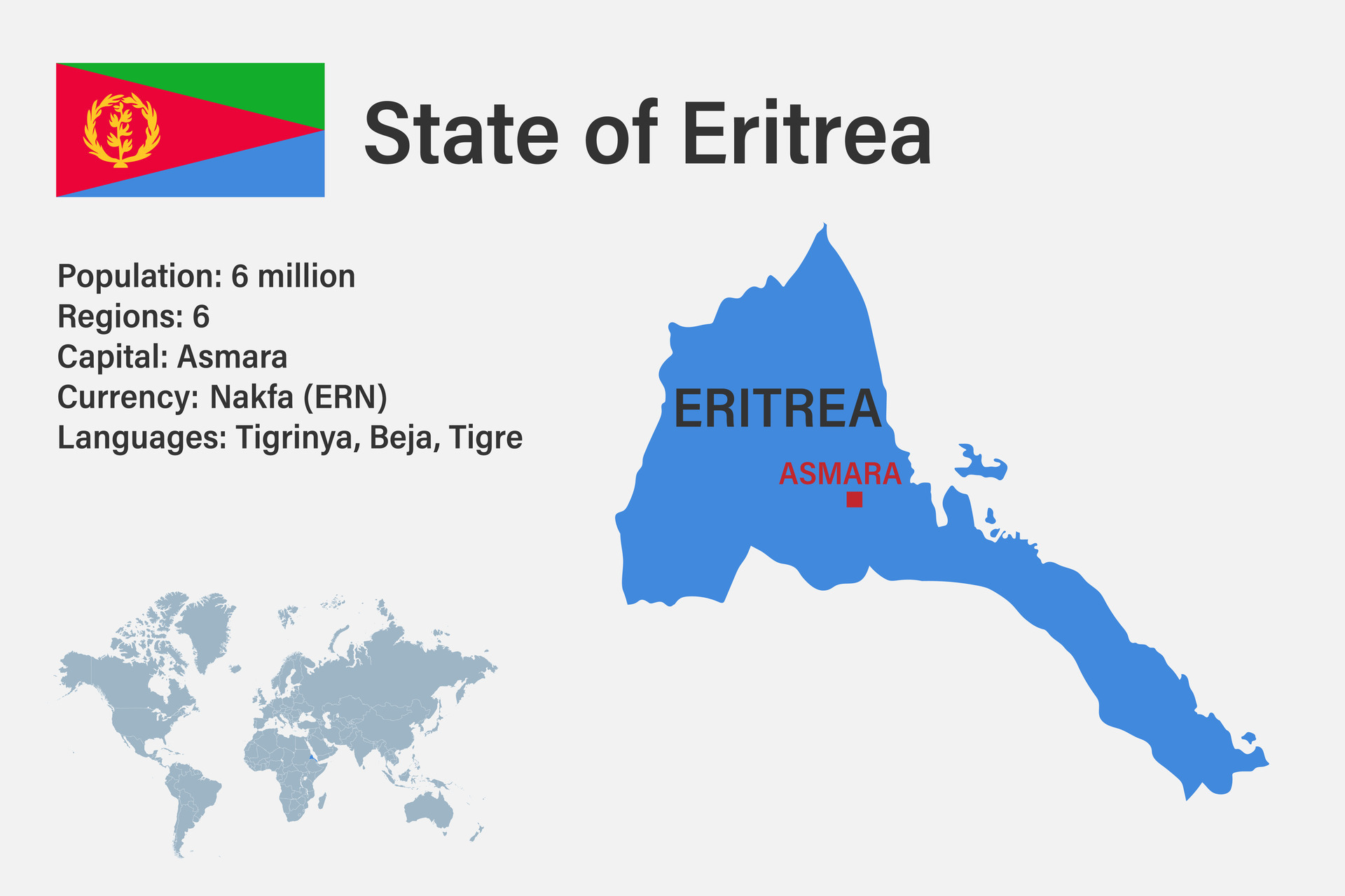 Highly detailed Eritrea map with flag capital and small map of the