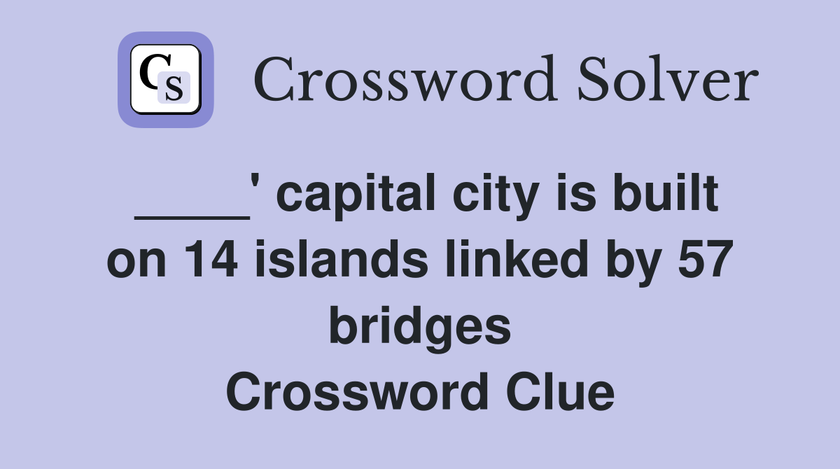 capital city is built on 14 islands linked by 57 bridges Crossword