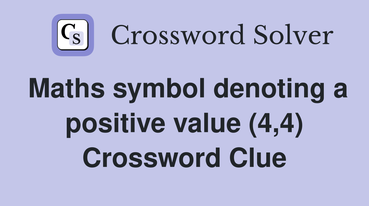 Maths symbol denoting a positive value (4 4) Crossword Clue Answers