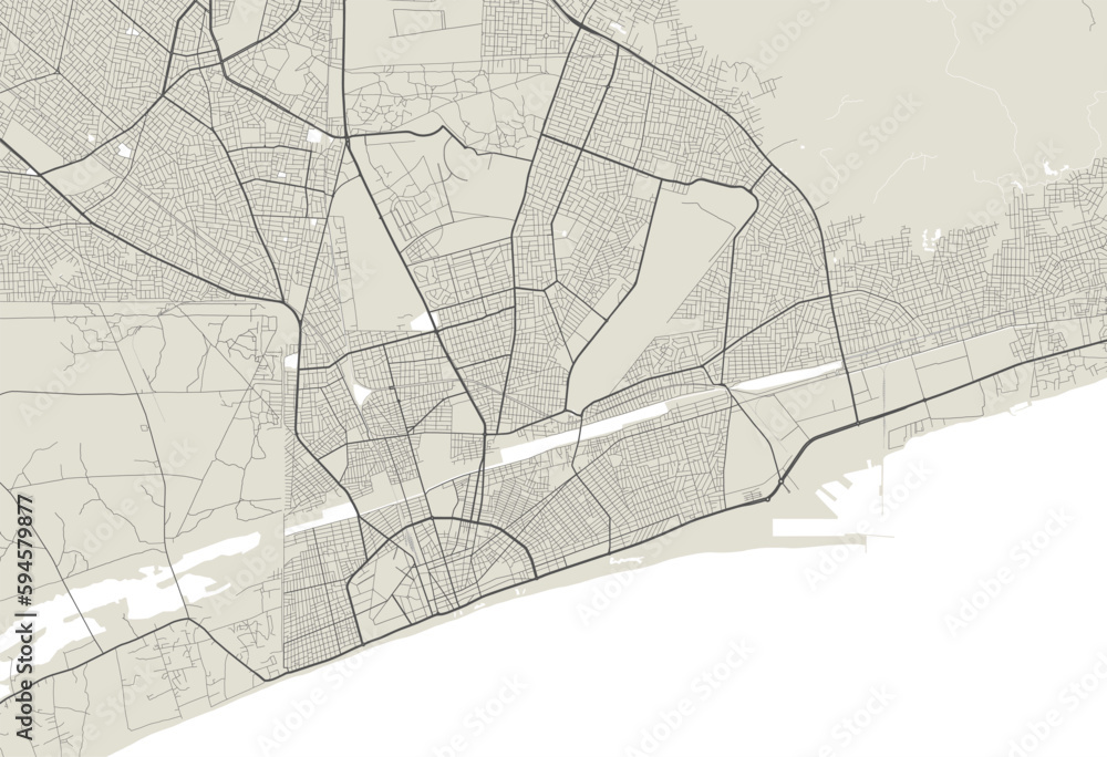 Detailed Map of Lome City Capital of Togo Municipal Administrative