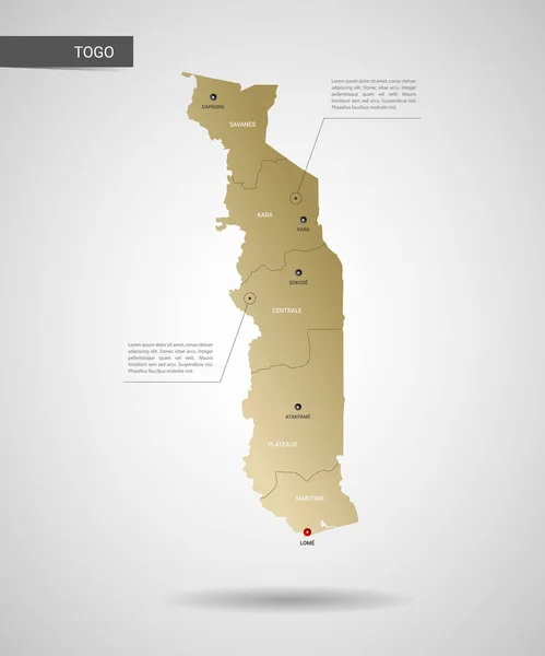 Mapa de togo sobre fondo blanco el mapa tiene todas las provincias y
