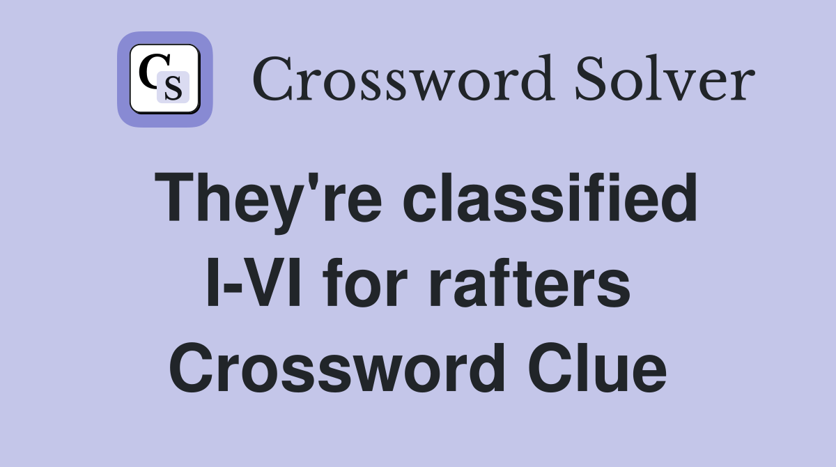 They #39 re classified I VI for rafters Crossword Clue Answers