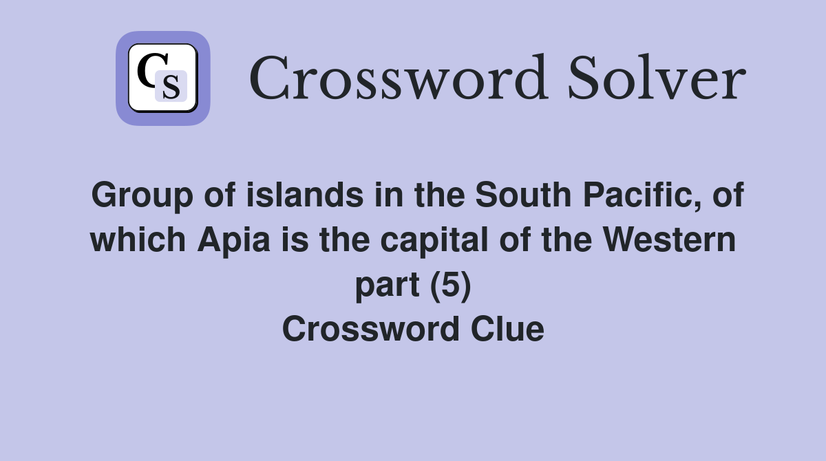 Samoa s capital Crossword Clue Answers Crossword Solver