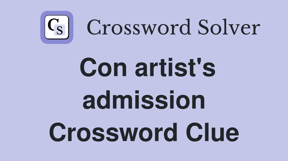 Con artist #39 s admission Crossword Clue Answers Crossword Solver