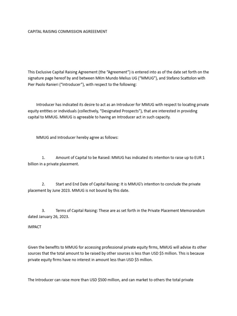 Capital Raising Agreement Template