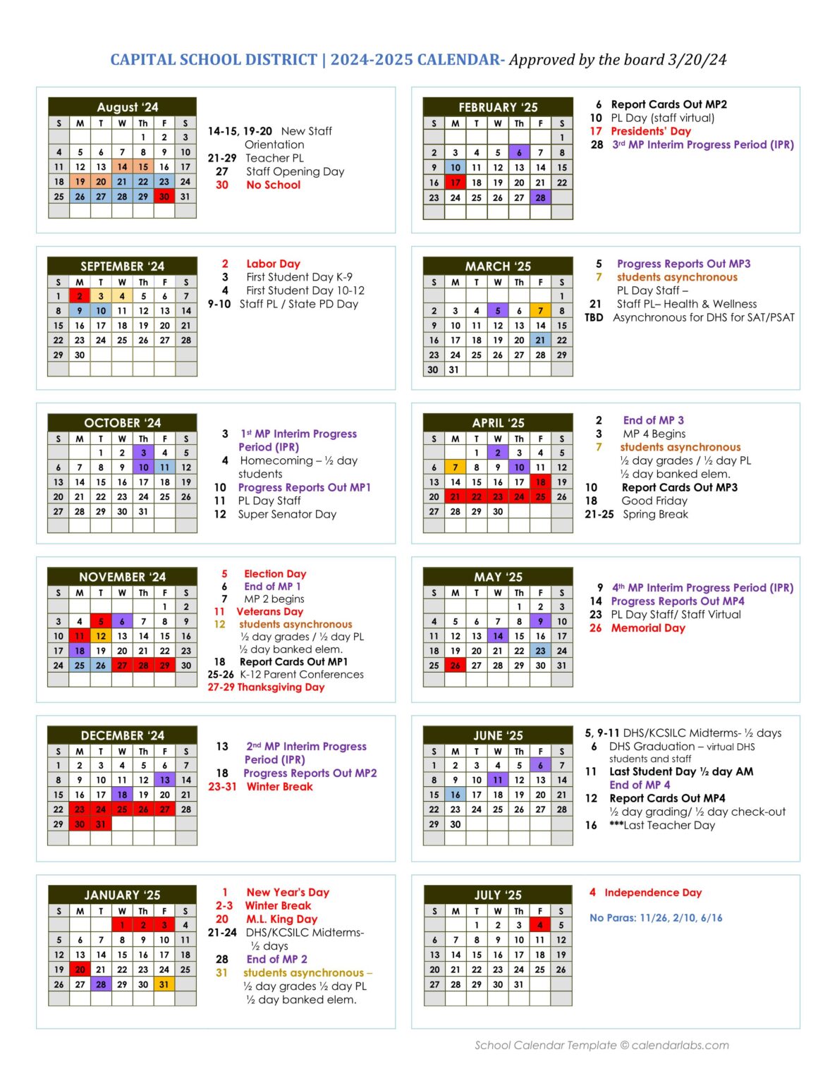 Capital District Schools DE Calendar 24 25 PDF EduCounty