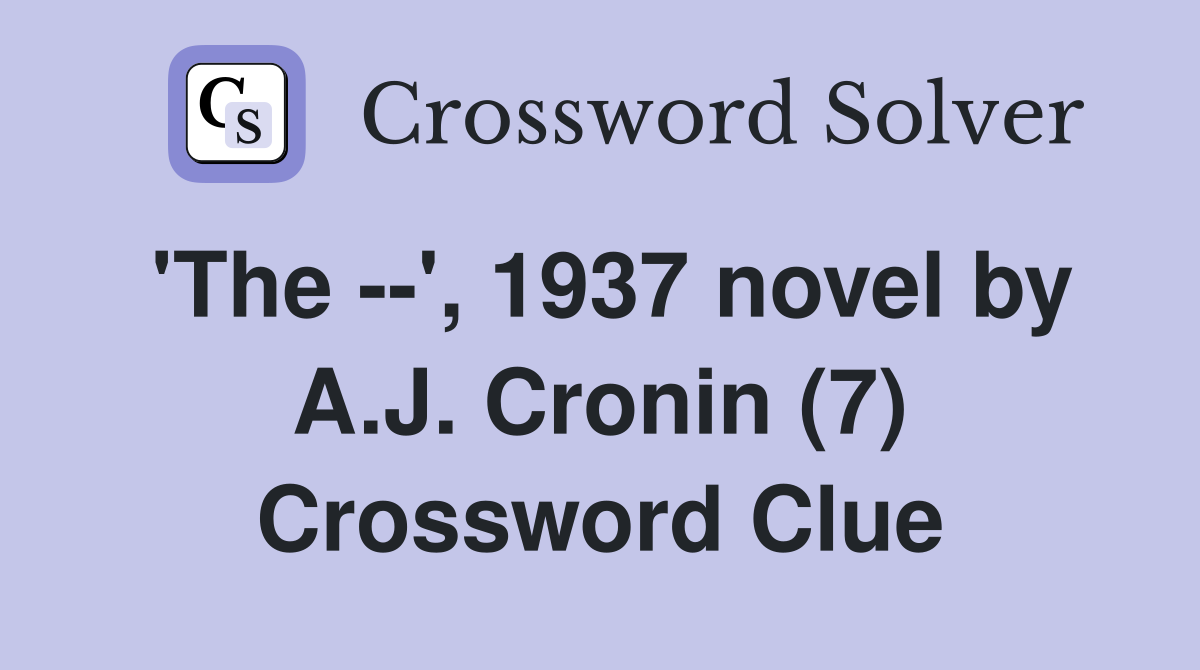 #39 The #39 1937 novel by A J Cronin (7) Crossword Clue Answers