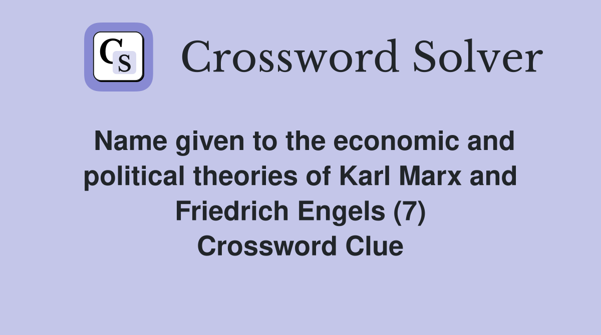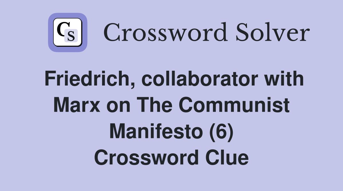 Karl Marx s closest collaborator (surname) (6) Crossword Clue Answers