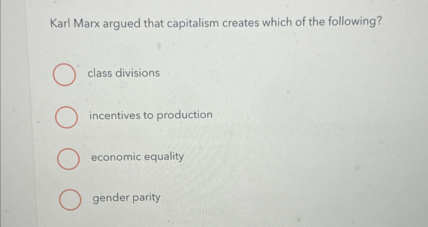 Solved Karl Marx argued that capitalism creates which of the Chegg com