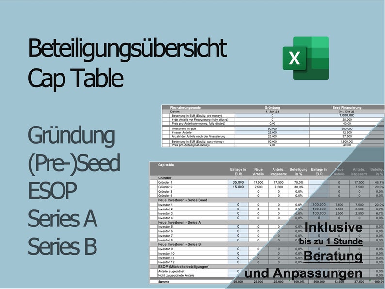 Startup Capitalization Table Template in Excel Google Sheets