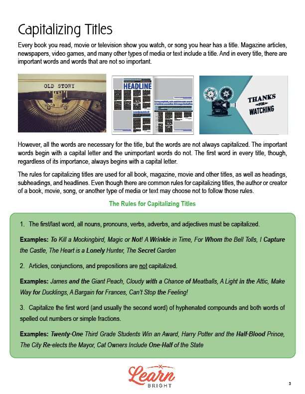 Capitalizing Titles: Grammar Practice Printable Skills Sheets