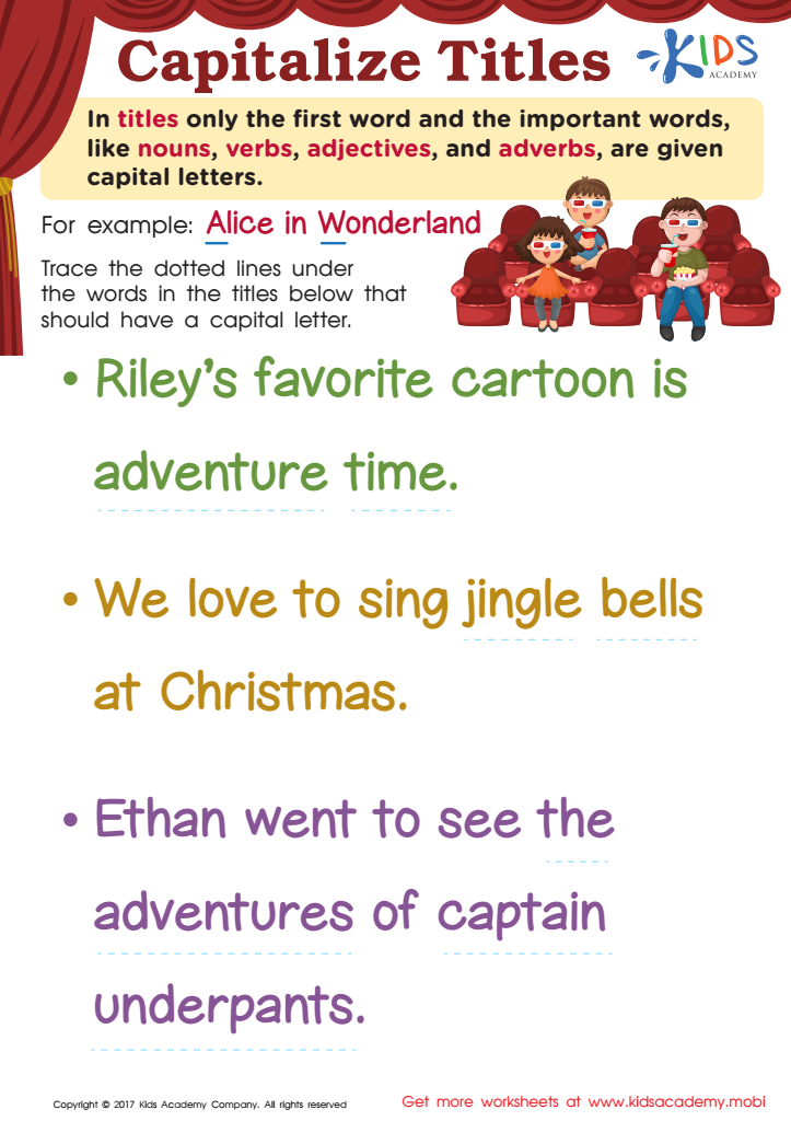 Capitalization of Titles Worksheet: Free Printable for Kids
