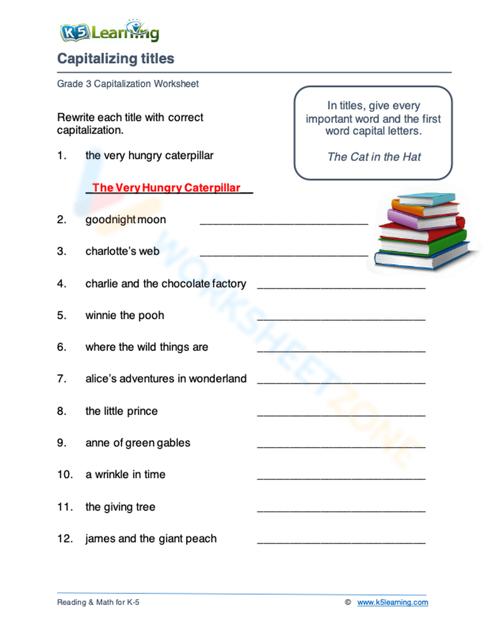 English worksheets: Capitalizing Book Titles Worksheets Library