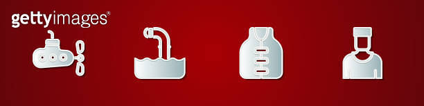 Set Submarine Periscope Life jacket and Sailor captain icon Vector