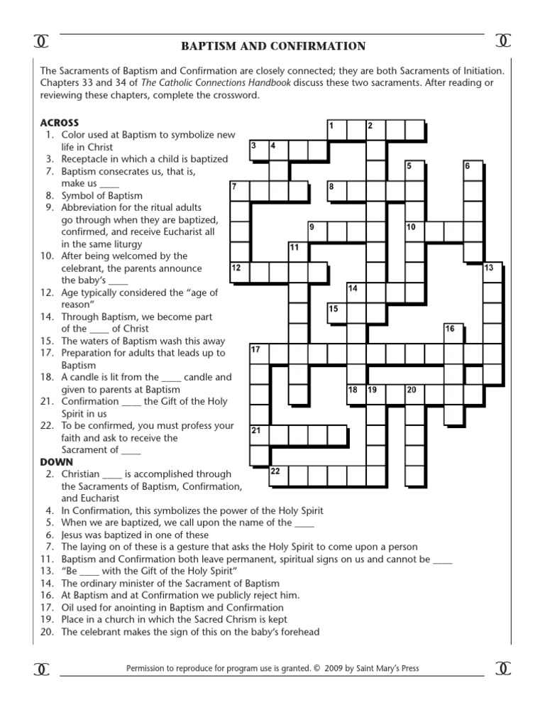 Baptism and Confirmation Crossword Puzzle