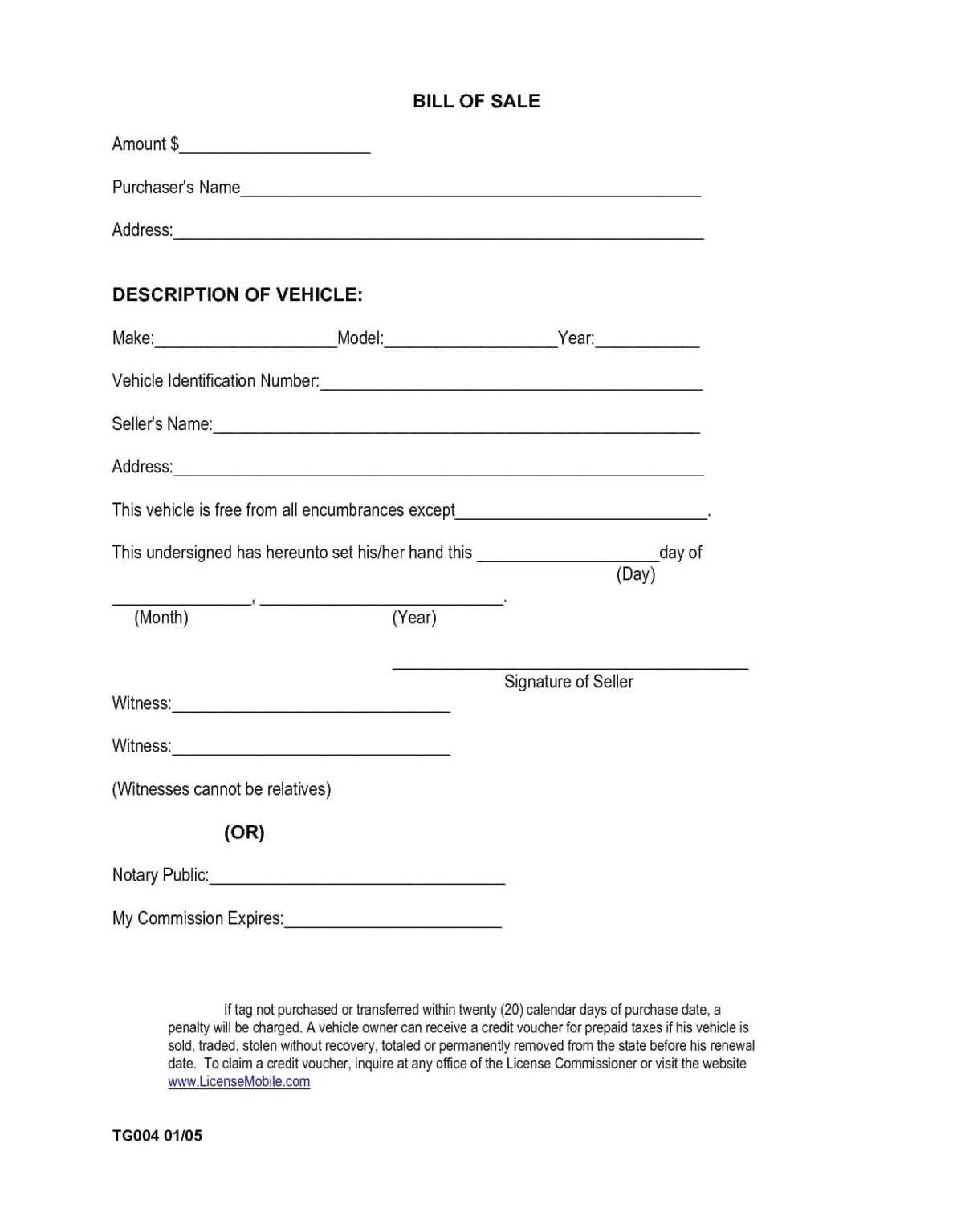 Fillable Online Vehicle bill of sale template word document Vehicle