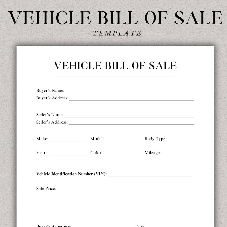 Vehicle Bill of Sale Car Sale Form Truck for Sale Automotive for